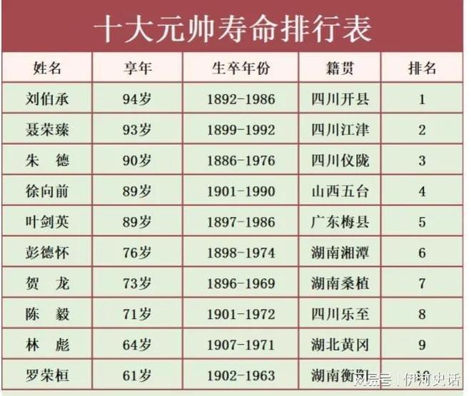 十大名將名表排名